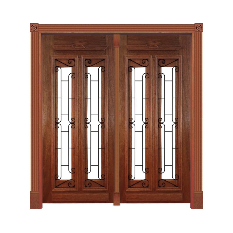Itens: Portal Duplo para vidro, 02 folhas de Porta alteza com Grade, Guarnições Unha de Gato para os dois lados, 02 pares de rosetas torneadas.