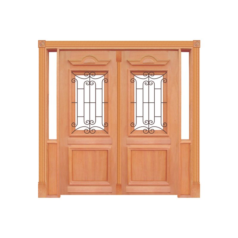 Itens: Portal Duplo para vidro, 02 folhas de Porta Realeza com Grade, Guarnições Unha de Gato para os dois lados, 02 pares de rosetas torneadas.